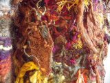 前身頃に、真綿で作った枯葉の様なモチーフをとめ付けています。