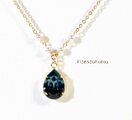 雫型のトップと、チェーンを小さなスワロフスキーガラスのホワイトのパールで繋ぎました。小さなパールなので、主張しすぎずにデニムカラーに合っていると思います。