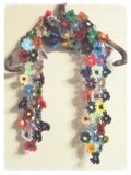 いろいろな色のマーガレットモチーフを繋げたマフラーです。