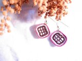 濃いピンク・白・こげ茶のレース糸を編んだモチーフ。