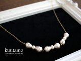 コットンパールで作ったリボンを3つ並べたネックレスです。