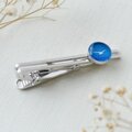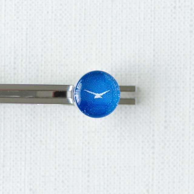 青空を飛ぶ白い鳥を描いた絵を、樹脂で閉じ込めたネクタイピンです。