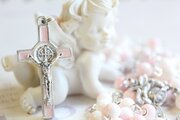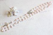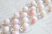 パステルピンクのクロスと合わせてやさしい雰囲気のロザリオになりました。