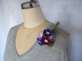 ダリアと小菊とライラックのコサージュどれも素敵なコサージュです。手がこんでいてそれでいてセンスもよく、細部までこだわりの感じられる作品です。どんな服につけようかワクワクします! 入っていたハート型のケースも可愛かったです♪