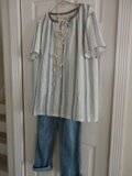 リネンらしいシャリ感があり、ざっくりとした感じの優しい生成り色と、くすんだブルーのストライプがとてもナチュラル。