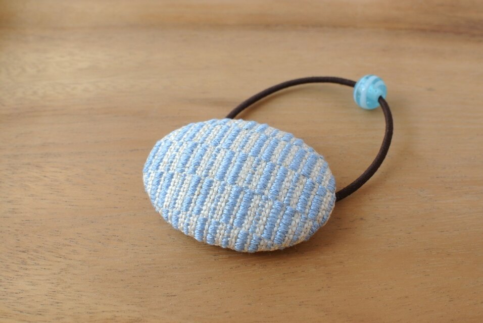 こぎん刺しの楕円型のヘアゴムです。
