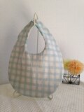 裏はベビーブルーのチェックのダブルガーゼを使用し、リバーシブルでご利用いただけます。