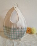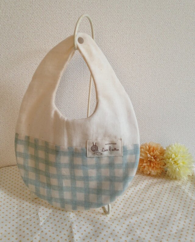 ベビーブルーのシンプルなチェックのダブルガーゼを使用したベビースタイ。