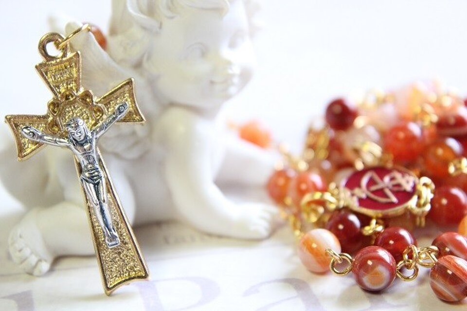 ※ロザリオは本来、お祈りの道具として使用されるものですが、こちらではアクセサリーと して製作販売しております。