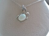 スワンプレシャスオパール(ノーマルカット: AAA エチオピア産:色合い・・・クリアホワイトカラー SV925製フレーム:ジルコニア付)、チェーンネックレス(幅1.5㎜ 小豆チェーン:SV 925製)。10月のお誕生石。