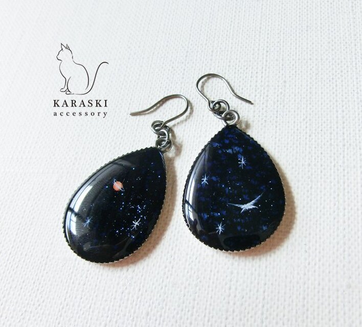 手描きのオリジナルイラストをレジンで閉じ込めたピアスです。