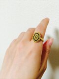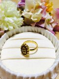 黒地のガラスにゴールドのカッティングが美しいリングです☆主役級の存在感♥️ ガラスサイズ 14mm×10mm