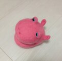 羊毛フェルトで出来た口を開いたカバの顔(ぴんく)です。