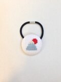 クロスステッチでひとつひとつ手縫いしたヘアゴムです。