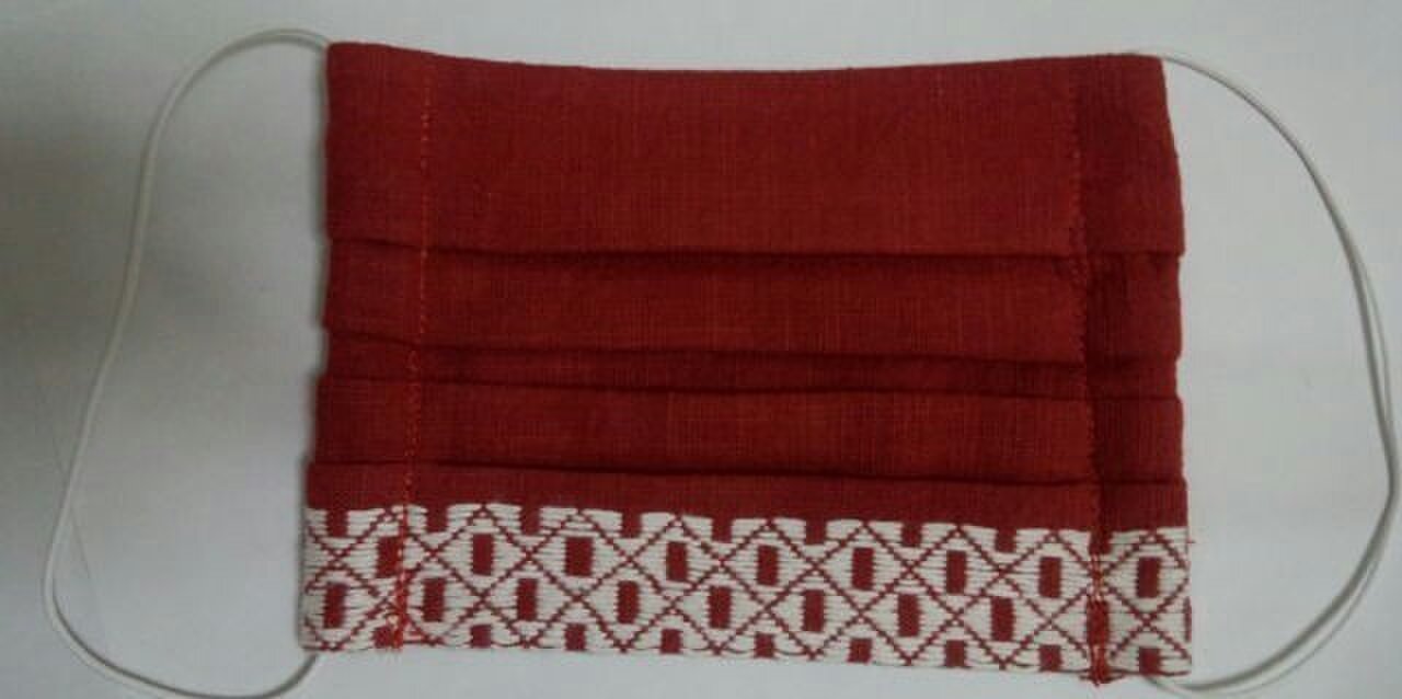 こぎん刺しを施したプリーツ式のマスクです。