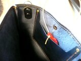 厚さ約1ミリのつやがある黒に近い濃紺色の山羊革でシンプルバッグを作りました。