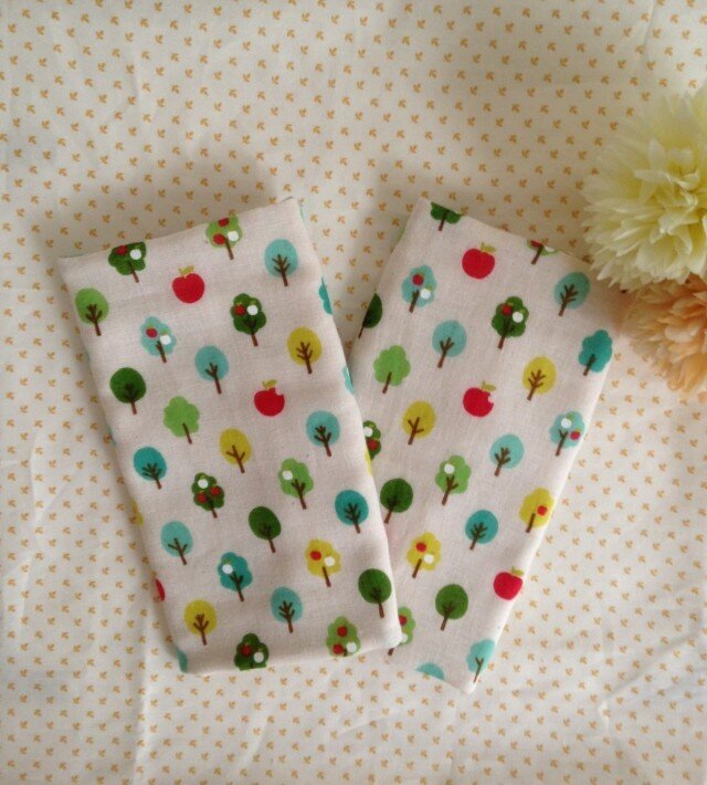 北欧風なリンゴとツリーのデザインされたダブルガーゼを使用したよだれカバー。