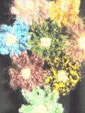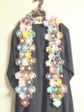 人気のマーガレットモチーフを繋げたマフラーを変わり毛糸で作ってみました。