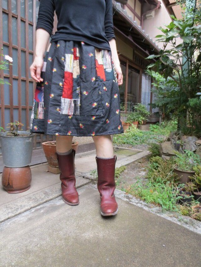 オーダー頂いた60㎝丈(59㎝で)☆黒系銘仙でリメイクスカート