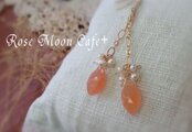 K14GF オレンジムーンストーンマーキスカット淡水パール天然石ピアス