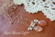 約10mm以上のオレンジムーンストーンに淡水パールをそえてピアスにしてみました。光にかざすとシラーが見えて神秘的です。 1ペアで色々なストーンが楽しめるピアスです。