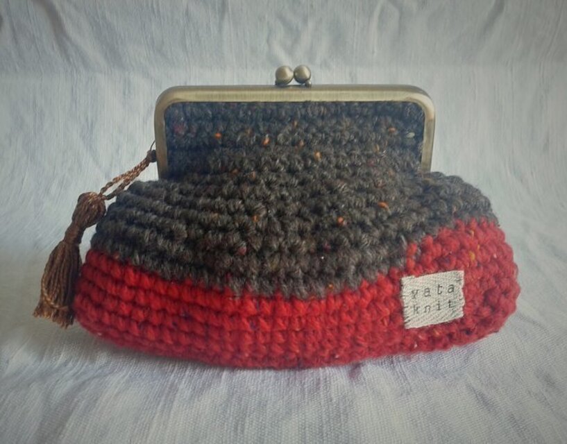 ぷっくり膨れたカタチのほっこりニットがま口。