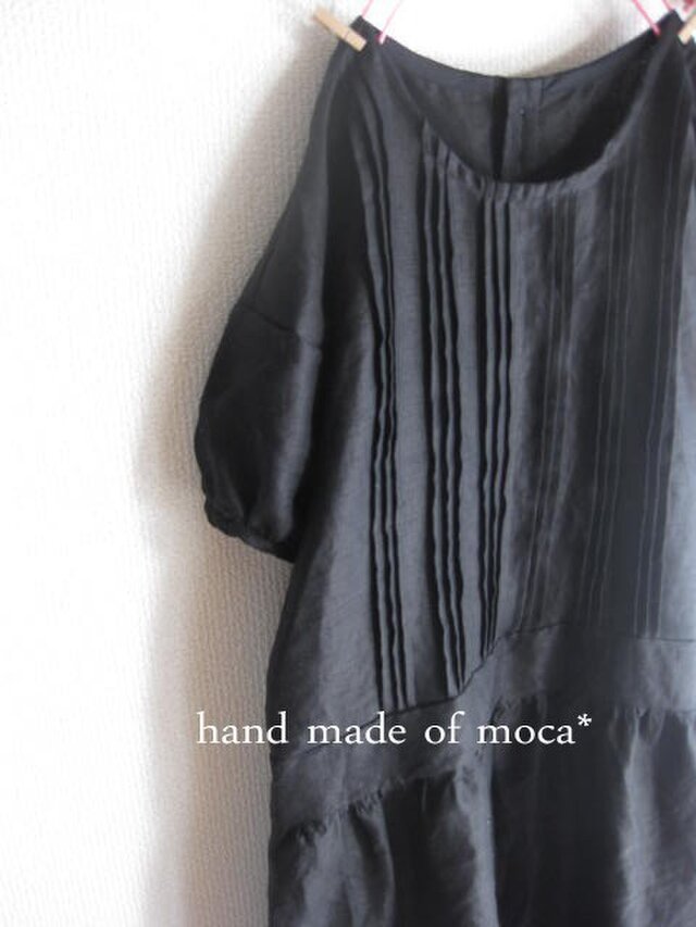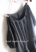 【受注製作/3.31再販売】W50パフスリーブ前ピンタックリネンワンピース★黒