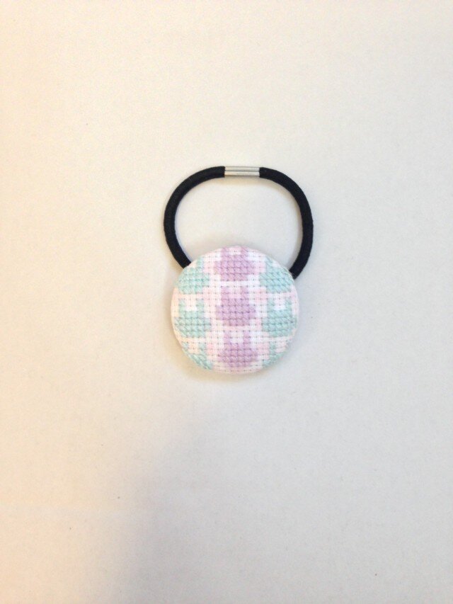 クロスステッチでひとつひとつ手縫いしたヘアゴムです。