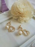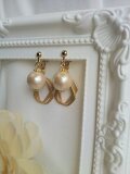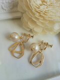 大粒のコットンパールと二重に重ねた変形メタルがゆらゆら揺れて可愛いです♪