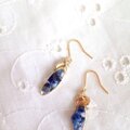 深いブルーのきれいなラピスラズリを小さなリーフパーツに詰め込みました。縦長のデザインでシャープでクールなイメージに仕上げました。