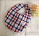 トリコロールチェックのダブルガーゼを使用したベビースタイ。