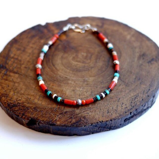 イタリアンコーラル、ターコイズ、カレンシルバーを合わせた贅沢な逸品です。