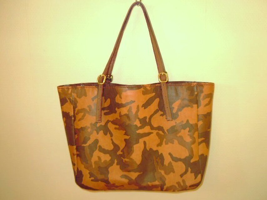 表本体 牛革(迷彩プリントオイルレザー) 持ち手 牛革(無地)バックル(合金)