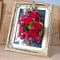 華やかな赤と、ゴールドフレームの写真たてが華やで、ギフトや自宅を彩るインテリアとしてオススメの一品です。