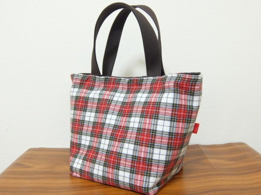色:タータンチェックのミニトート赤