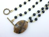 ロングネックレスは、想像よりも重みがあり、パタパタしなくていいです。 ピアスのグレーオニキスもとても綺麗です。 肌なじみよく、石の大きさもいい感じです。