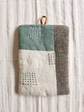 シックなグリーンとナチュラルカラーのリネン、ブラウンのリネンウールをパッチワークし、