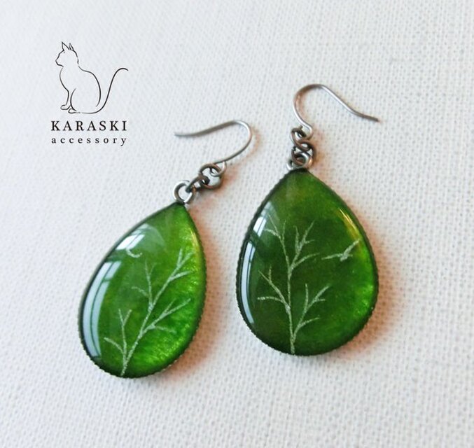 手描きのオリジナルイラストをレジンで閉じ込めたピアスです。