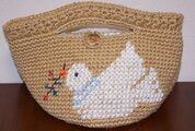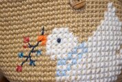アクリルの毛糸で、白い鳩をクロスステッチで入れてみました。