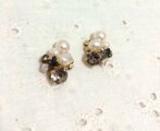 パールとブラウンの色合いがシックなビジューピアス/イヤリングです。