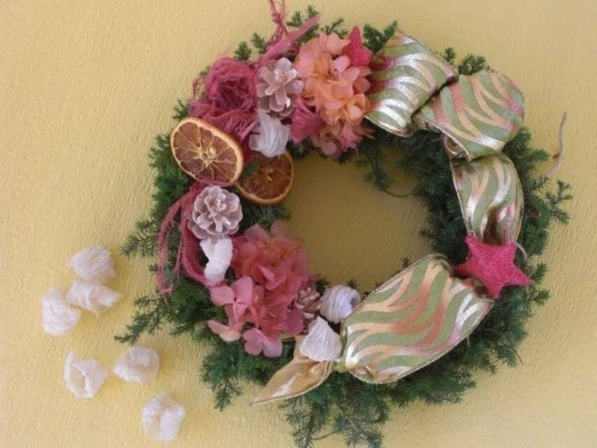 優しいトーンのカラーのリースです。