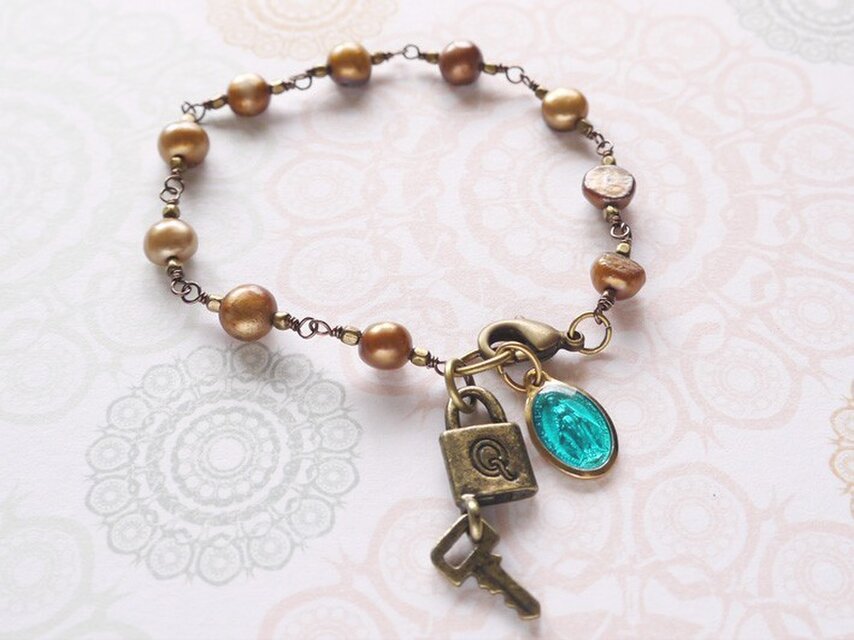 チャームは、可愛い南京錠とパリの不思議メダイを下げています。