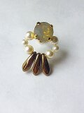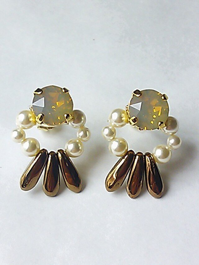 サンドオパールのスワロフスキーにパールとブロンズのダガービーズが光るピアスです。