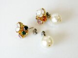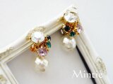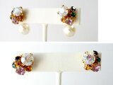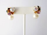 マルチカラーのスワロフスキークリスタルを寄せた、キラキラブーケのピアスです。