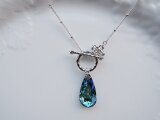 スワロフスキークリスタル(24×12㎜)、デザインビーズチェーン、デザインAカン、マンテル(クラウン)、丸カン。(メッキ製)