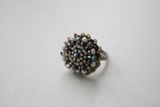 ビーズ刺繍を施したくるみボタンを指輪に仕立てました。
