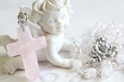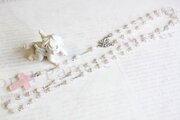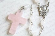 クロスは少し濃いめのピンクですが、全体的に優しい柔らかな印象のロザリオです。
