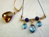 ネックレスに仕立てました。ロンドンブルートパーズの両脇にはブルーアパタイト