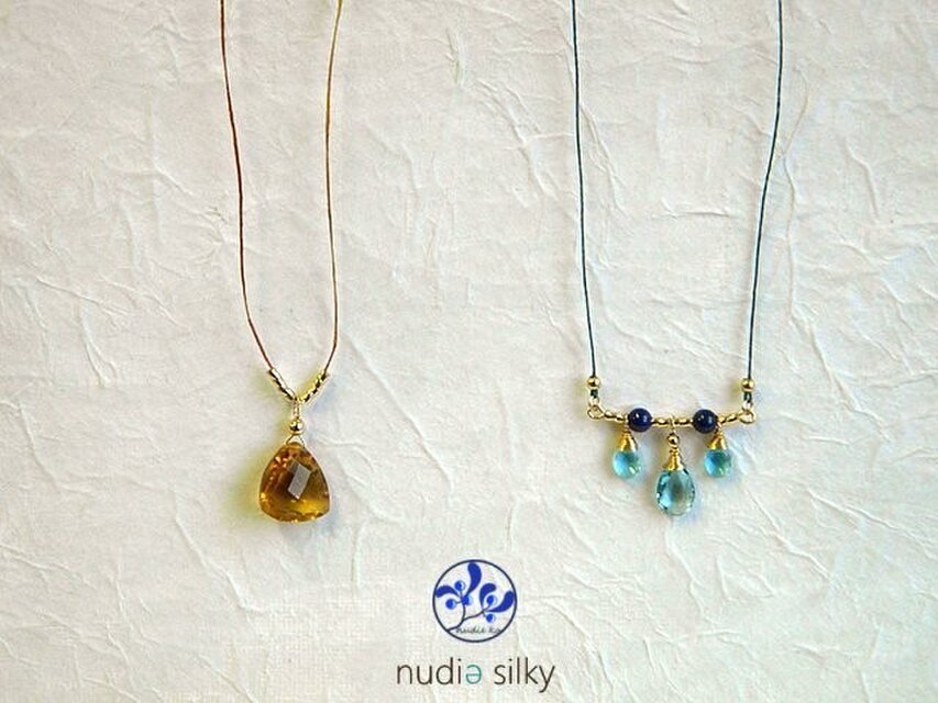 それぞれ石の色に合わせて、シルク糸を草木染めで染め上げています。