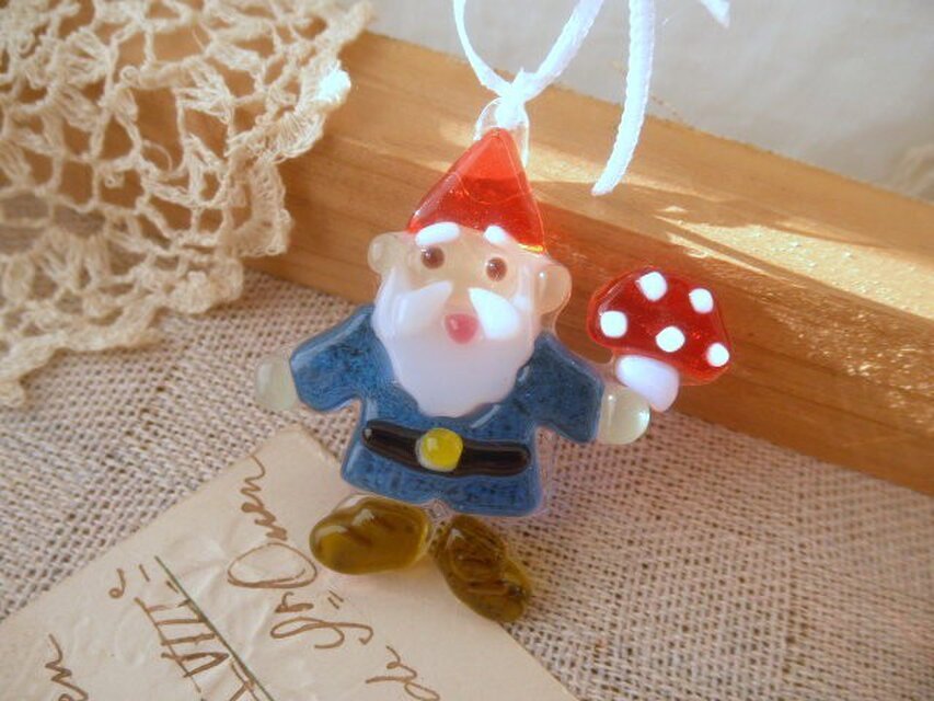 あかいお帽子をかぶりました、ノームおじさんのガラス・オーナメントです♪